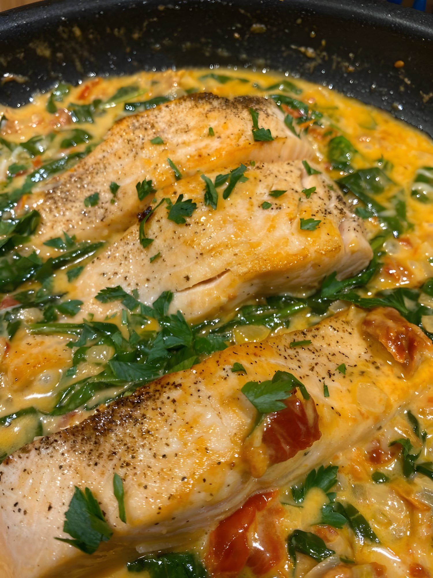 Romige Toscaanse Zalm met Knoflook, Spinazie & Zongedroogde Tomaten 🌿🍅