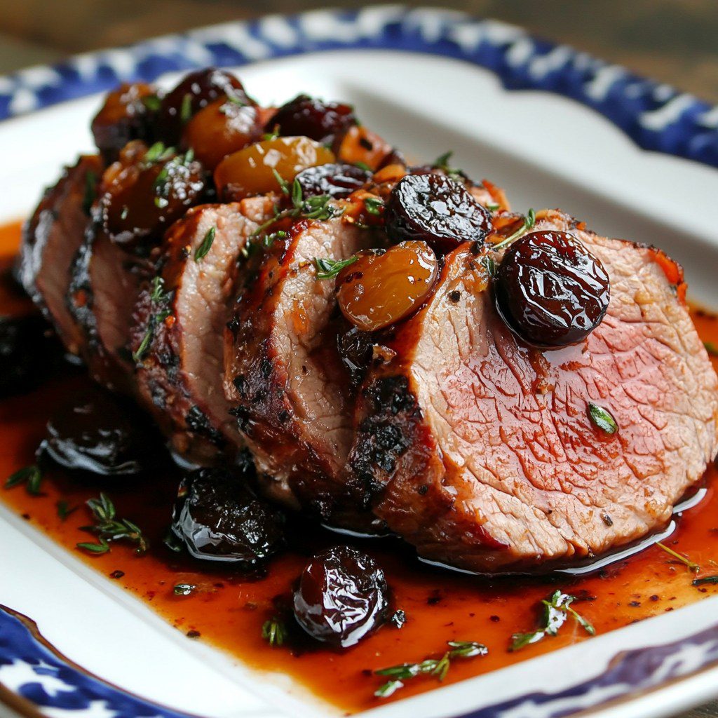 Rosbief met gerookte paprika en geroosterde pruimen
