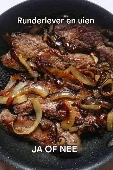 Dunne plakjes runderlever worden gebakken in olijfolie en geserveerd met gekarameliseerde uien. Zorg ervoor dat je de lever niet te gaar bakt! Medium-rare gebakken is hij mals en zoet.