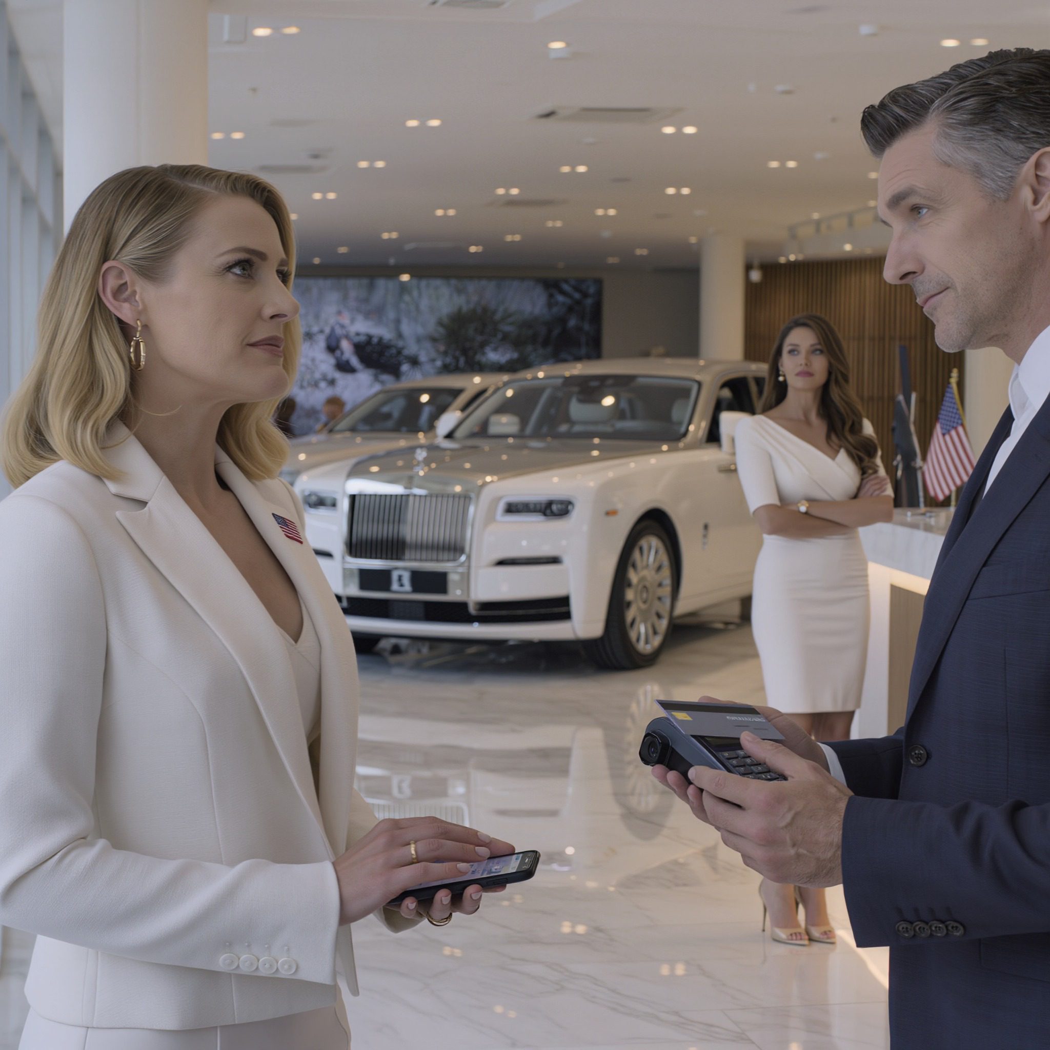 ‘s Ochtends beëindigde ik mijn huwelijk bij de rechtbank van Los Angeles County. ‘s Middags liep mijn ex-man met de vrouw met wie hij een relatie had een Rolls-Royce-showroom in Beverly Hills binnen en zei: « Het is maar een miljoen dollar. Als je hem mooi vindt, nemen we hem. » De verkoper knipperde met zijn ogen naar de betaalterminal en zei: « Het spijt me, meneer, maar al uw drie creditcards… »