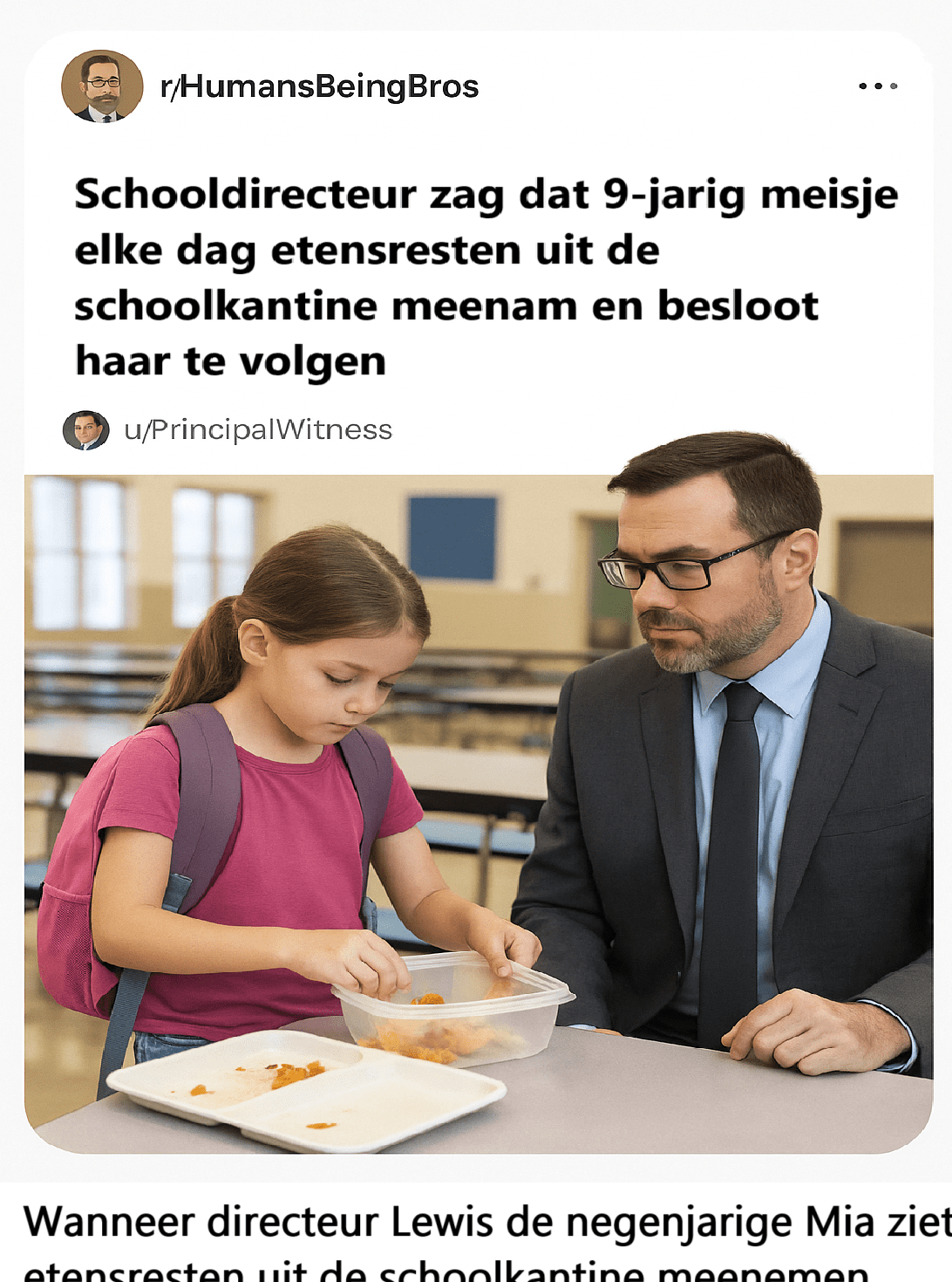 « Vandaag zag ik haar etensresten uit de kantine meenemen, » zei hij. « Niet alleen extra snacks, dat is prima. We moedigen dat aan als de kinderen langere dagen hebben. Maar Mia? Ze was eten aan het inzamelen. Ze verzamelde uitgepakte boterhammen, pakte appels die de kinderen niet hadden aangeraakt en stopte melkpakken in haar rugzak. »