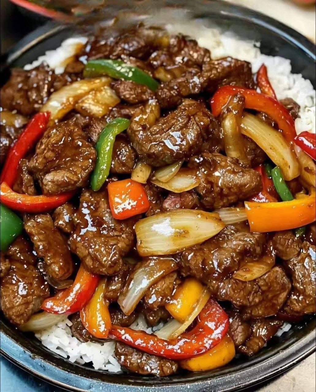 Malse stukjes biefstuk, knapperige paprika’s en zoetige ui worden samen geroerbakt in een glanzende, rijke saus.