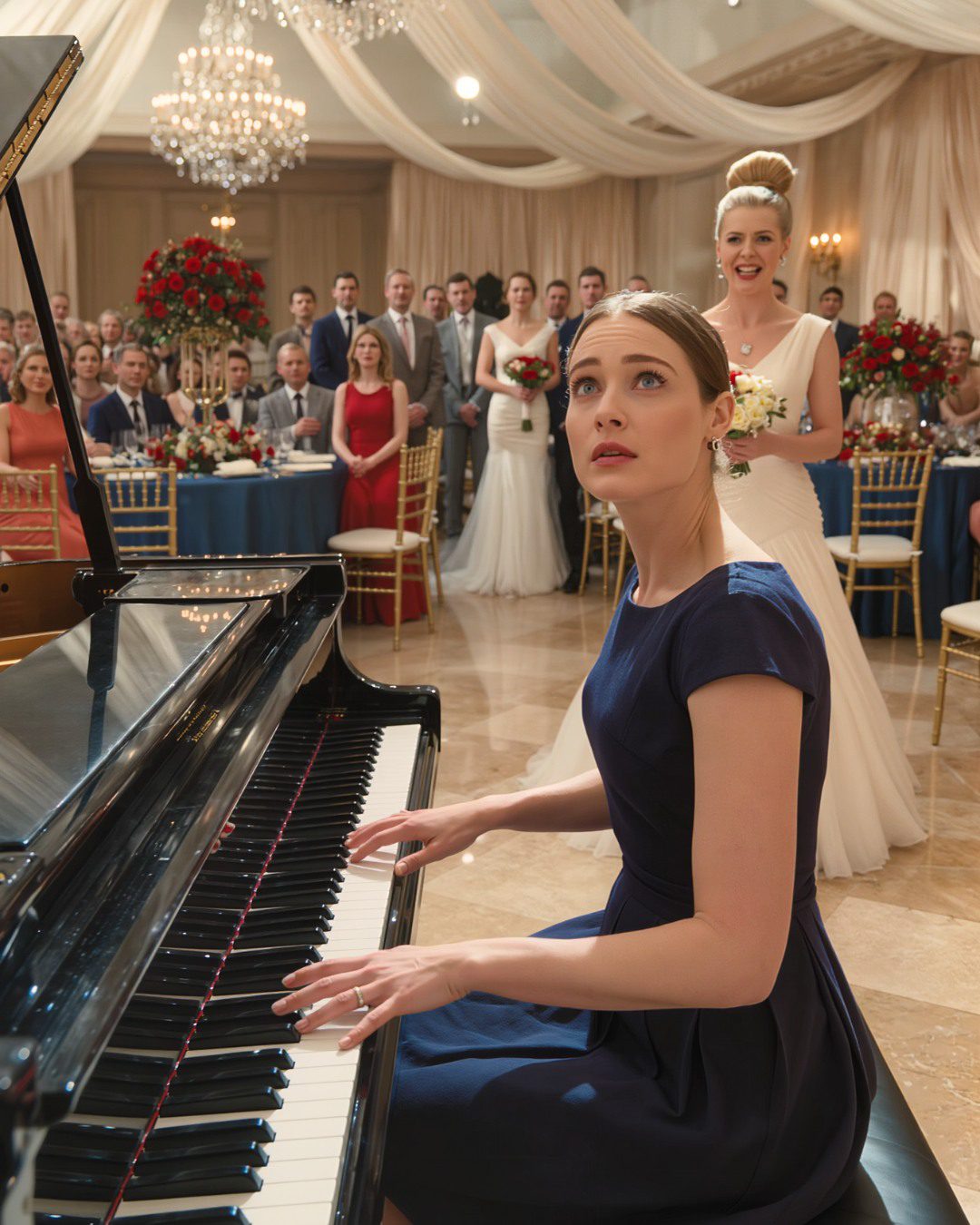 Mijn naam is Elina Johnson. Ik ben 32 en ongehuwd – iets wat blijkbaar ieders favoriete detail over mij is. Ik werk al jaren in deze trouwzaal, lang genoeg om precies te weten waar elke kabel is vastgeplakt, waar elk stopcontact zich bevindt en waar het tapijt altijd met hakken blijft haken.