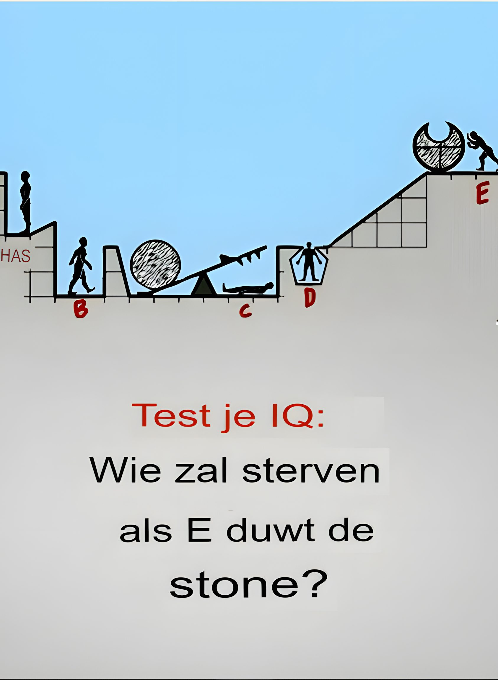 De puzzel van vandaag vereist een grondige analyse en een basiskennis van de natuurkunde. Maar zelfs als je geen expert bent in de natuurkunde, kan een goed observatievermogen voldoende zijn om de puzzel op te lossen. De puzzelafbeelding toont vijf personen, gelabeld A tot en met E. E staat op het punt een steen van een helling af te duwen. De steen staat ver genoeg uit elkaar om er een hoofd in te passen.