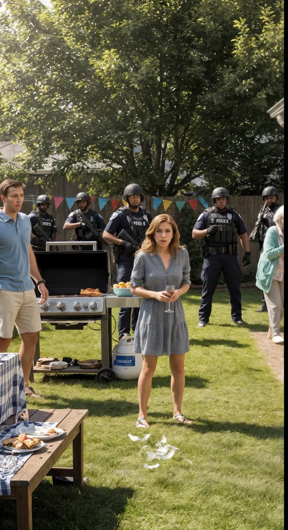 De telefoon lichtte op de terrastafel op: een kort, dringend bericht van een onbekend nummer. Wegwezen. Praat met niemand. Nu. Ik glipte stilletjes weg van de familiebarbecue, net voordat politieauto’s, met zwaailichten maar sirenes uit, de smetteloze oprit van mijn stiefdochter opreden. Dat moment veranderde alles wat ik dacht te weten over mijn familie.