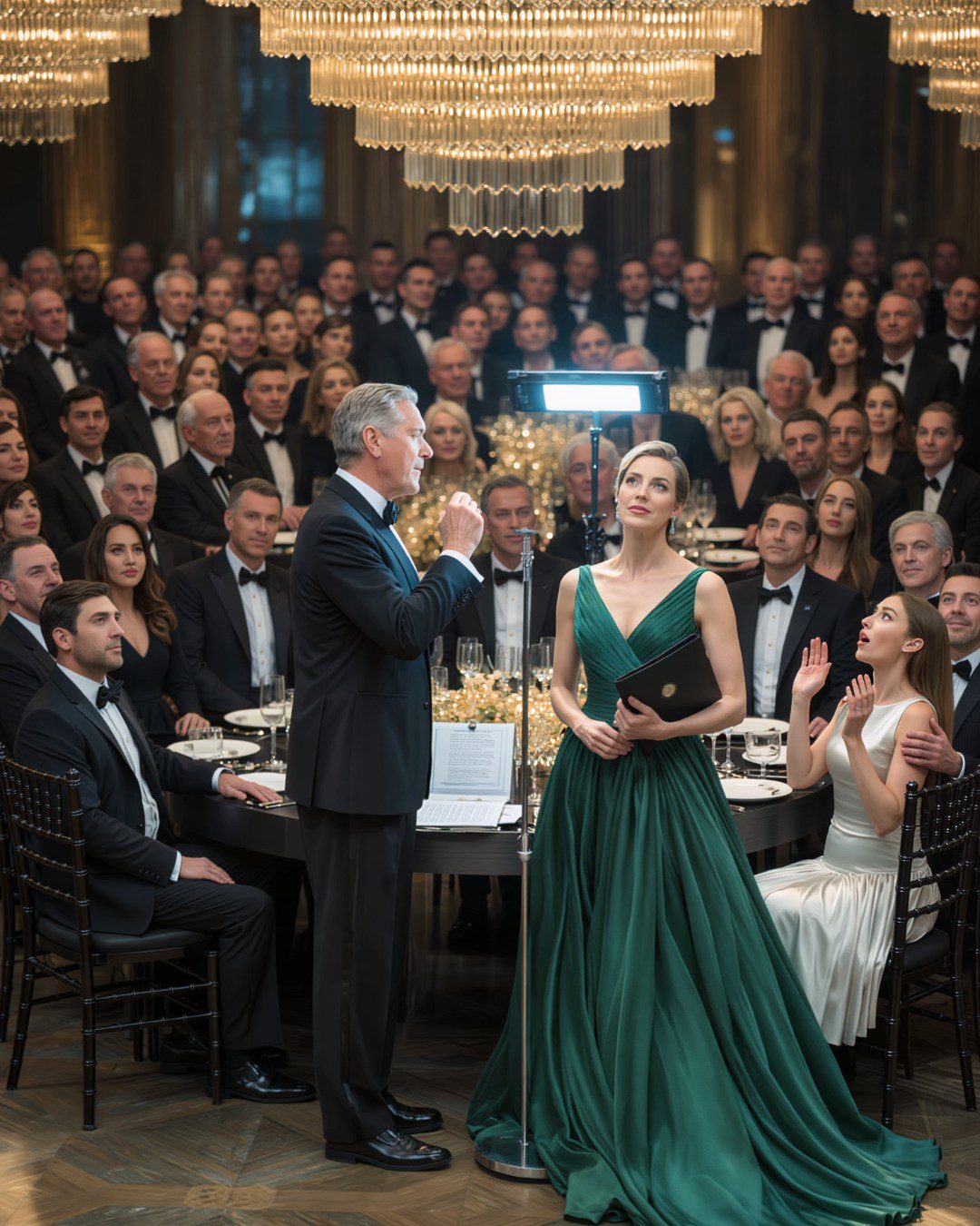 Zijn stoel schraapte zachtjes over de gepolijste vloer toen hij opstond. Om ons heen glinsterde de balzaal van de Medical Excellence Awards – kroonluchters, zacht goudkleurig licht, het gemurmel van tweehonderd van de meest gerespecteerde medische professionals van het land. Onze tafel stond vooraan, dicht bij het podium dat was gereserveerd voor de ‘pioniers’ en ‘visionairs’ van dit jaar.