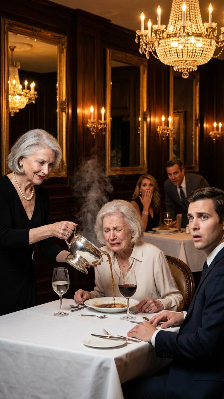 Margaret verstijfde. Haar vingers trilden om het servet terwijl ze de brandende vloeistof van haar gezicht depte. Maar de echte pijn kwam van haar zoon, Daniel, die stijfjes naast Linda zat. Hij bewoog niet, protesteerde niet… hij zag er zelfs niet boos uit. Hij leek alleen maar beschaamd – door zijn eigen moeder.