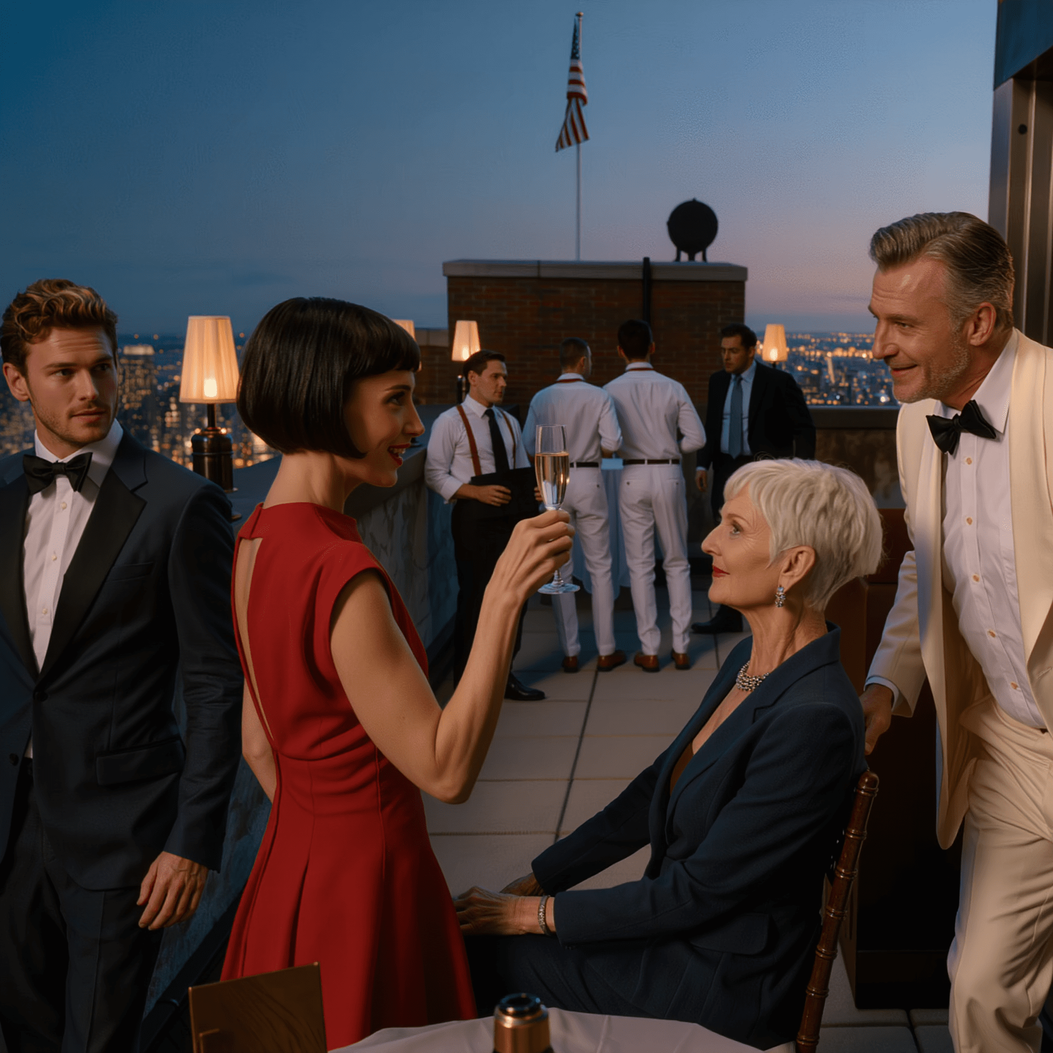 Tweehonderd gasten vulden de locatie op het dakterras in Manhattan, en ik zat aan tafel 18, vlak bij de keuken, naast de bedieningscoördinator. Het was de viering van mijn schoondochter – haar overwinning, haar avond – en ik zat aan tafel met het personeel.