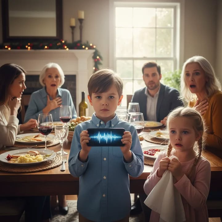 Tijdens ons nieuwjaarsdiner sloeg de moeder van mijn vrouw onze 5-jarige dochter. Iedereen aan tafel zweeg. Het lipje van het meisje begon te bloeden. Toen stond mijn zoon op en zei kalm: « Oma, zal ik iedereen laten zien wat je ons geheim hebt gehouden? »