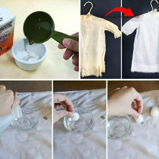 Zuiveringszout, azijn en waterstofperoxide zijn wat je nodig hebt om gele vlekken uit de oksels van overhemden te verwijderen. Probeer het!