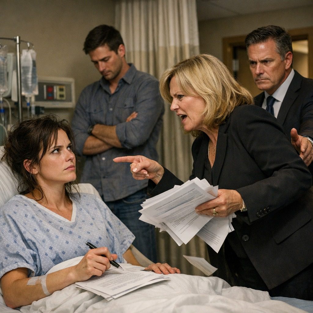 Toen ik zes maanden zwanger was, werd ik van de trap geduwd. Toen ik in het ziekenhuis wakker werd, duwde mijn schoonmoeder me een papier in mijn handen: « Je hebt gefaald als moeder. Onderteken dit – je gaat naar een psychiatrische inrichting. » Mijn man stond zwijgend toe te kijken hoe ik trillend de pen in mijn hand hield. Toen vloog de deur open. De stem van de hoofdarts doorbrak de spanning: « Stop. De politie heeft het ziekenhuis omsingeld. » Ze wisten één ding niet – elk detail was onderdeel van mijn valstrik geweest.