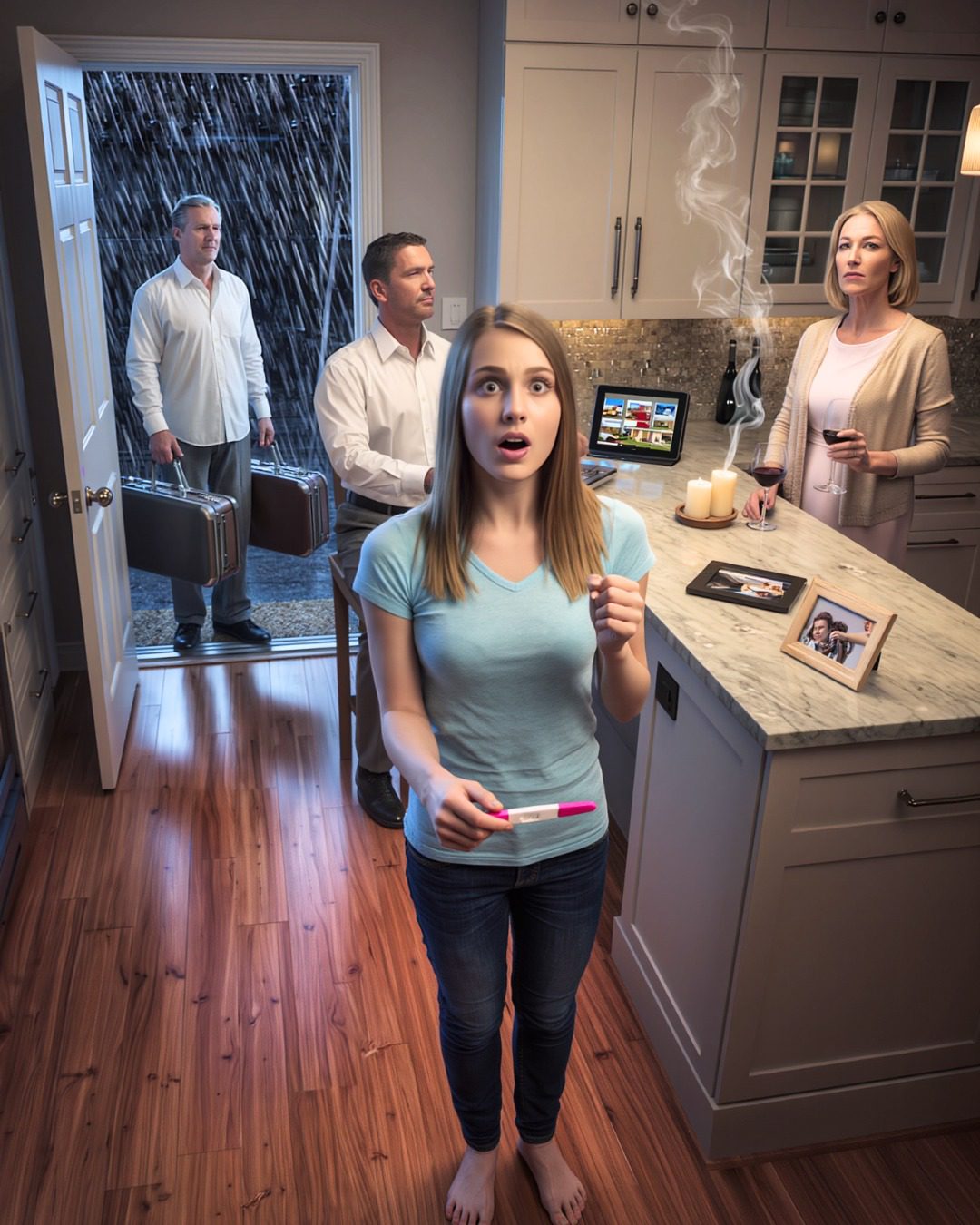 Ik herinner me de geur van die nacht nog voordat ik me de woorden herinner. Verbrande kaneel van een van moeders kaarsen, goedkope wijn, vaders eau de cologne – scherp en duur. Ik duwde de deur open met gevoelloze vingers en klemde de zwangerschapstest zo stevig vast dat het plastic in mijn handpalm sneed.