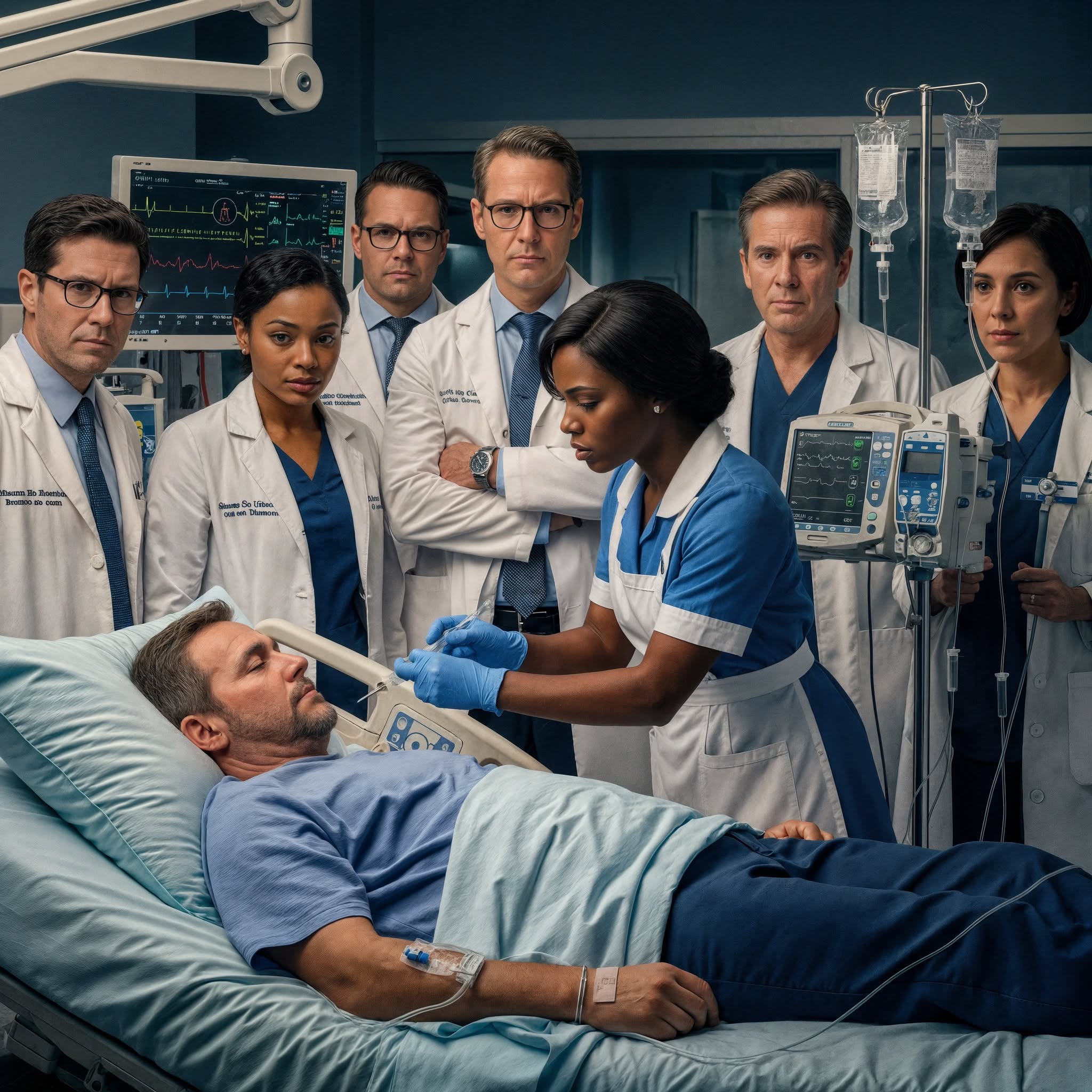 De artsen werkten met klinische precisie. Defibrillatoren werden aangevoerd. Adrenaline-injecties werden toegediend. Handen bonkten op zijn borst, synchroon met de borstcompressies, als een wanhopige trommel tegen de opmars van de dood. « Ga uit de weg! » klonk meer dan eens, maar het lichaam van de miljardair reageerde nauwelijks. Niets werkte. Niets hielp.
