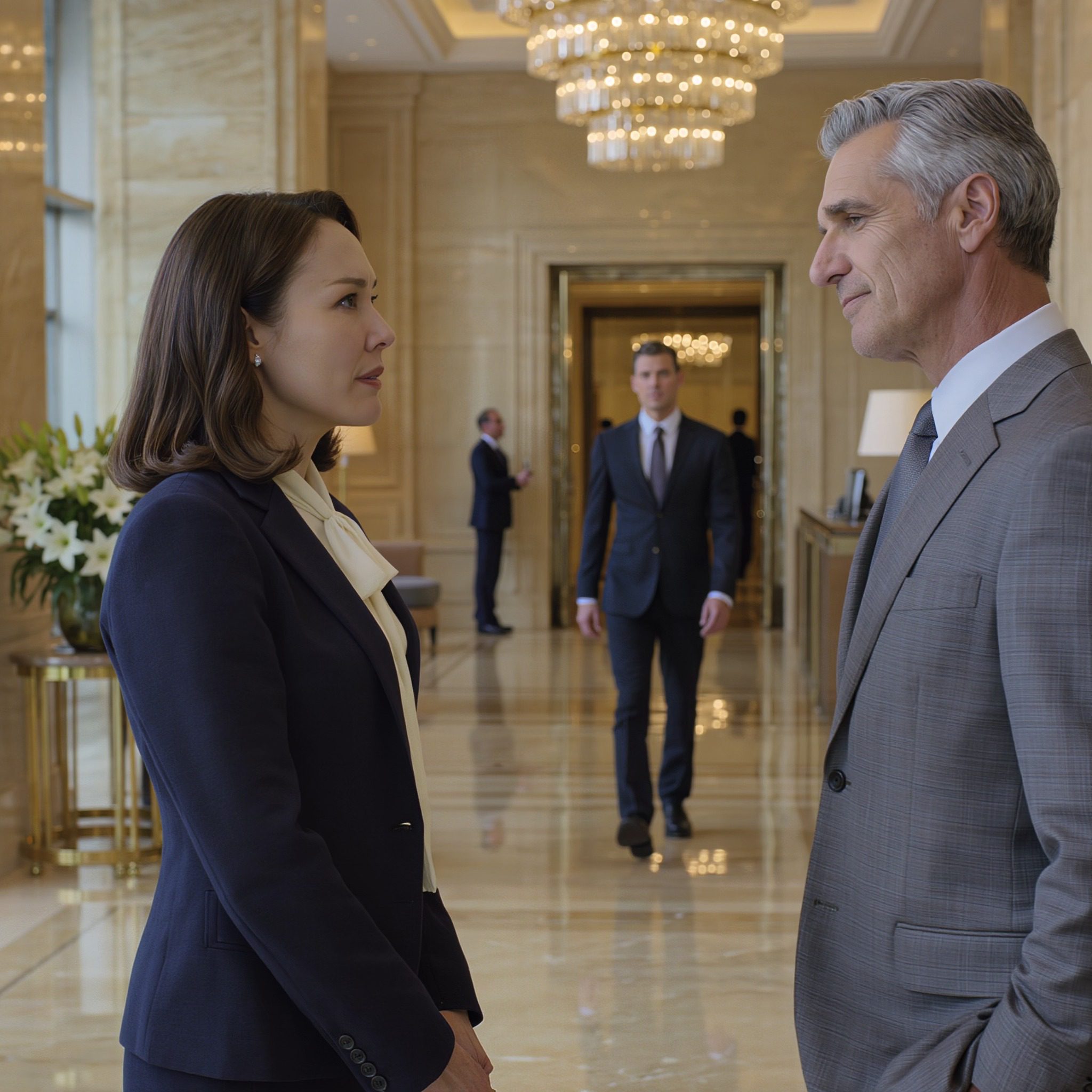 Hij stond in de marmeren lobby van het Grand Mercer Hotel en kneep zijn ogen samen naar de kroonluchter, alsof die elk moment op hem kon vallen, zoals mensen soms doen als ze ergens stappen waar ze zich niet thuis voelen. Zijn grijze pak hing wat losjes om zijn schouders en zijn handen trilden net genoeg om zijn leeftijd te verraden.