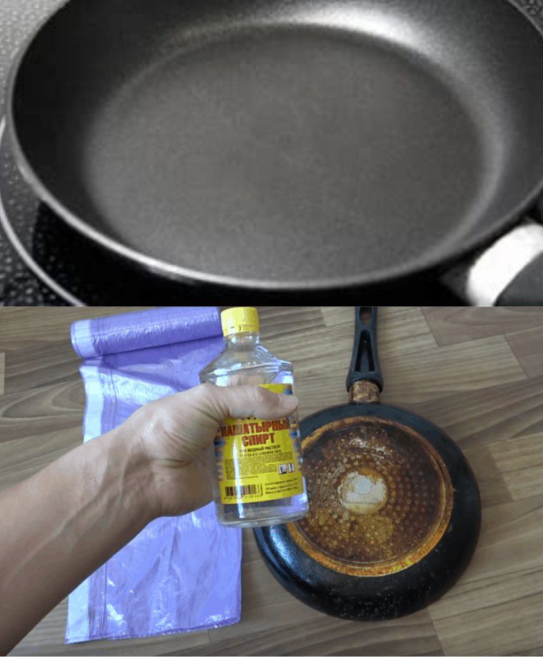 Als u een oude, aangebrande pan moet schoonmaken, wees dan heel voorzichtig.