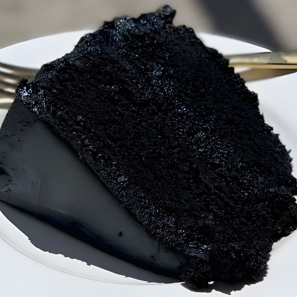 Deze intens zwarte chocoladetaart is een droom voor elke chocoladeliefhebber! 😍 De diepe, bijna fluweelachtige kleur komt van extra donker cacaopoeder en pure chocolade, wat zorgt voor een rijke, decadente en fudgy smaak.