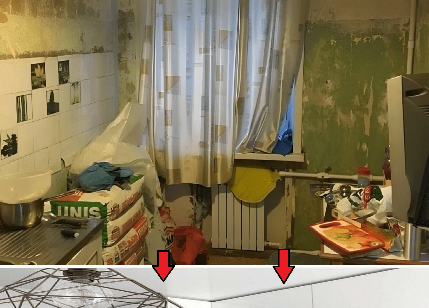 Een gezin heeft onlangs zijn ultieme droom bereikt: een eigen appartement. Toen ze erin trokken, bleek dat het appartement flink gerenoveerd moest worden, vooral de keuken. De verf bladderde van de muren, een radiator hing vreemd onder het raam vandaan en de oneffen vloer was bedekt met oud tapijt.