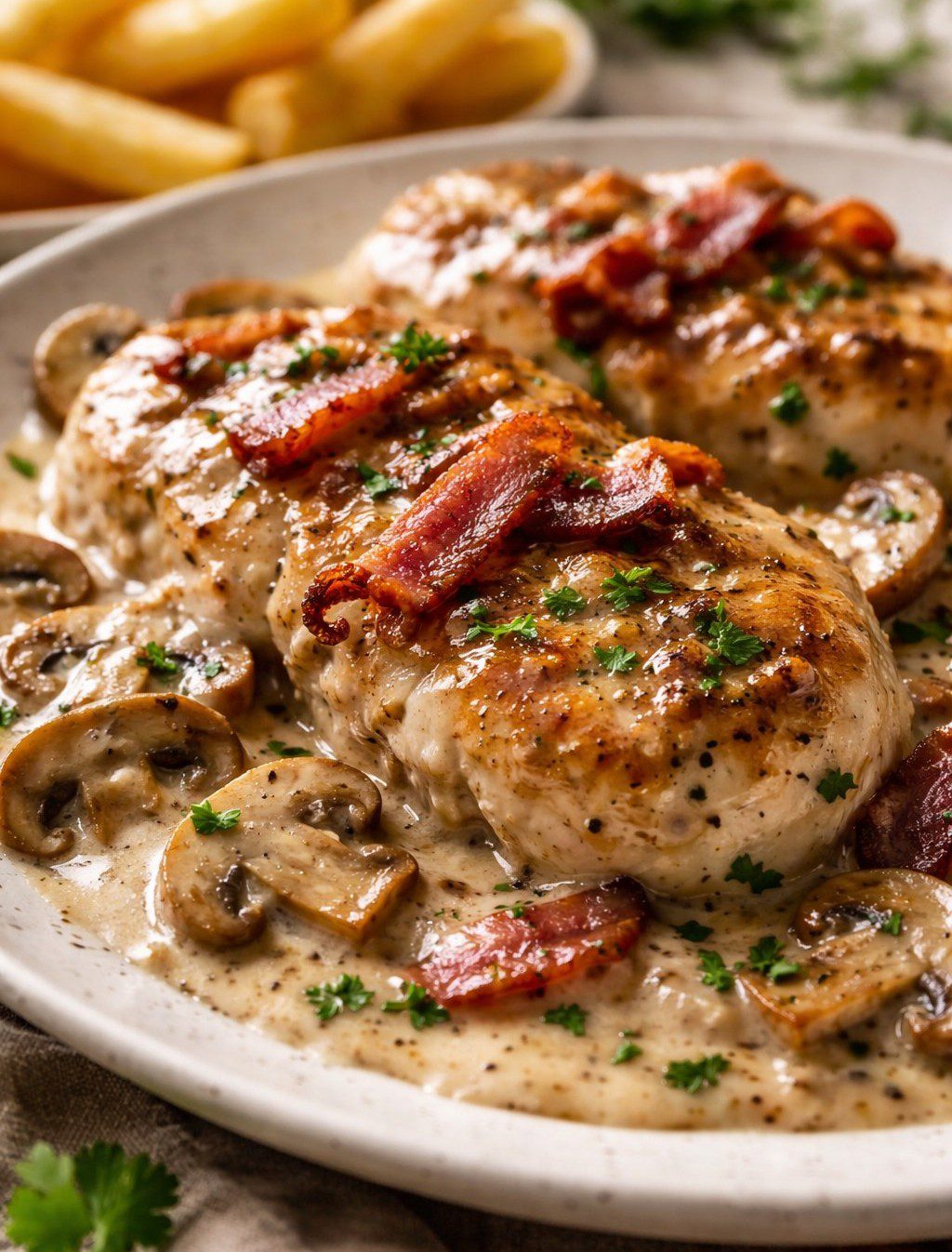 Varkensfilet in Romige Saus met Ham en Champignons
