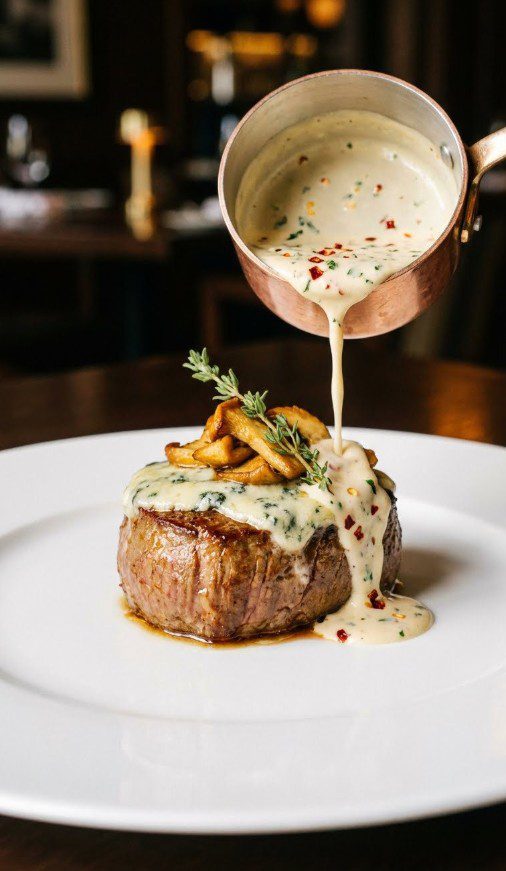 Wil je een restaurantwaardig diner serveren zonder de hele avond in de keuken te hoeven staan? Deze filet mignon met Boursin-kaas en champignons combineert elegantie, heerlijkheid en efficiëntie. Snel aangebraden filets, een romige champignonsaus, alles klaar in 20 minuten . Perfect voor een romantisch diner, een feestelijke maaltijd of een doordeweekse avond waarop je jezelf wilt verwennen.
