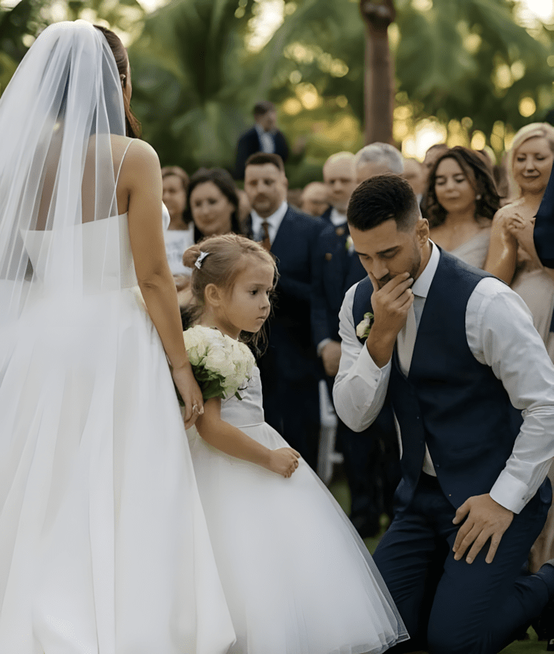 Terwijl mijn dochter fluisterde: “Papa, waarom huil je?”, keek de bruid me recht in de ogen… en op dat moment viel alles in elkaar.