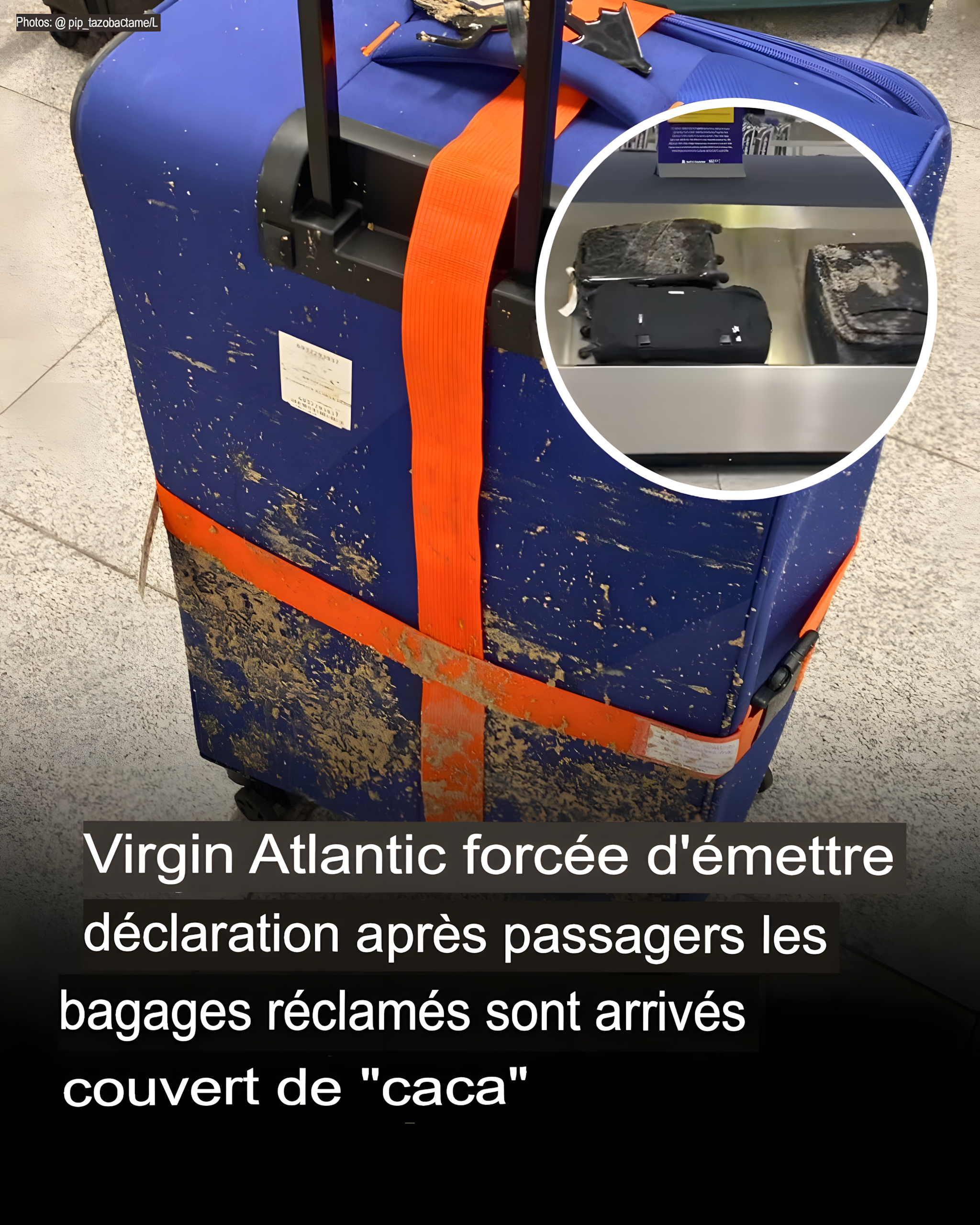 Ze deelden foto’s van hun tas en schreven: « @VirginAtlantic jullie zijn waardeloos! Letterlijk! Hoe kunnen al deze tassen vol zitten met menselijke stront! Het vloerpersoneel zegt dat ze geen doekjes, nieuwe tassen of handdesinfectiemiddel kunnen leveren en dat we ‘een e-mail moeten sturen naar het klantenserviceteam’. Al mijn kleren zijn kapot, want ik heb een stoffen tas. »