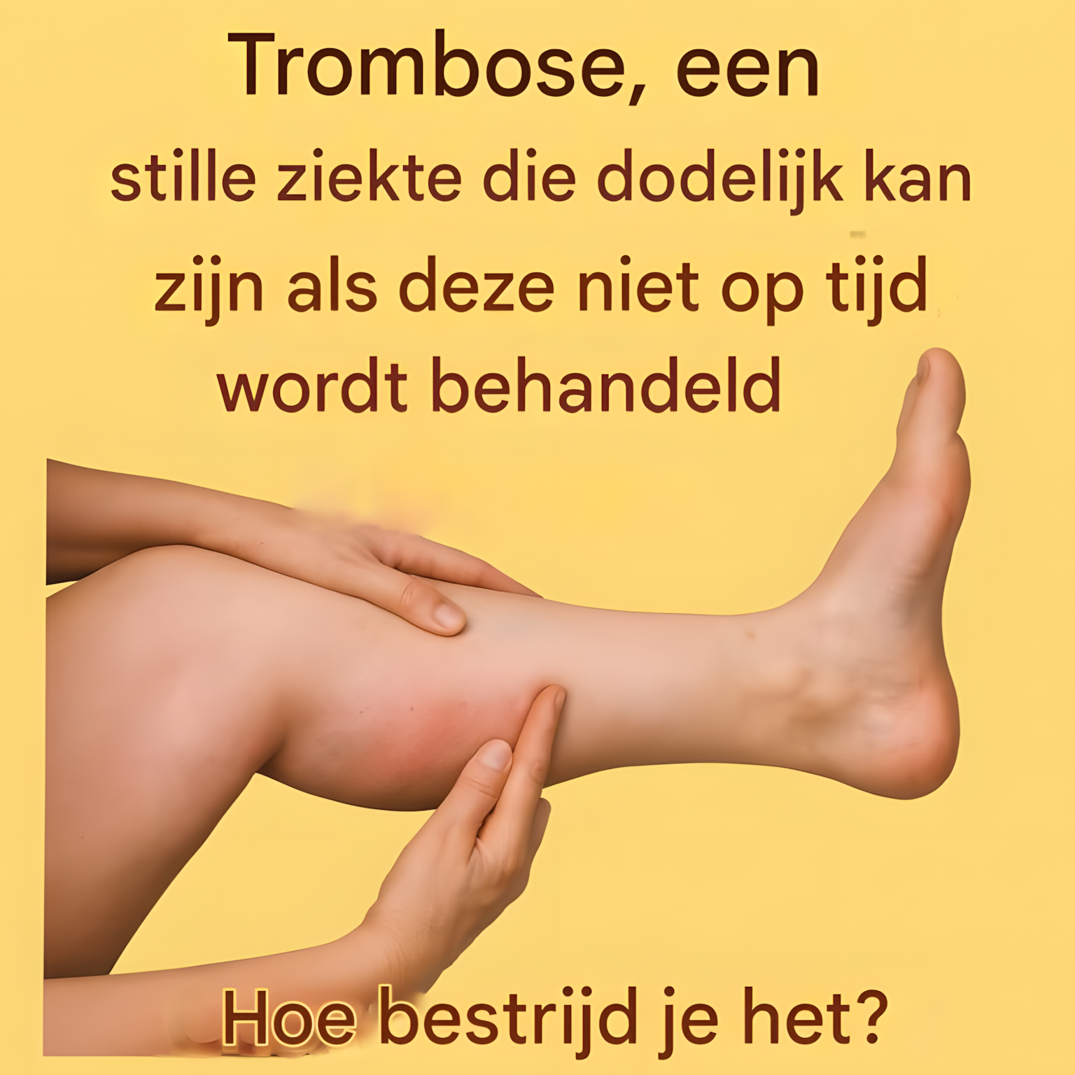 Veneuze trombose : tast de aderen aan, vooral in de benen. De meest voorkomende is diepe veneuze trombose (DVT).