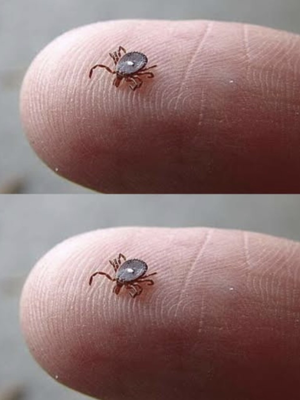 Weet iemand wat dit is? Ik zag het langs het been van mijn zoon kruipen na een wandeling in het bos. Het leek op een teek… maar die vreemde witte vlek maakte me bang. Ik ben een beetje bang. Heeft iemand ooit zoiets gezien?