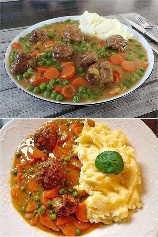 Yvonne’s Vikingpot is een traditionele, stevige stoofpot vol smaak! Een combinatie van sappige gehaktballetjes, verse groenten, en een rijke saus maken dit gerecht een favoriet voor het hele gezin. Geserveerd met een romige aardappelpuree is dit een perfecte comfort food-maaltijd, ideaal voor koudere dagen. 😋🌟