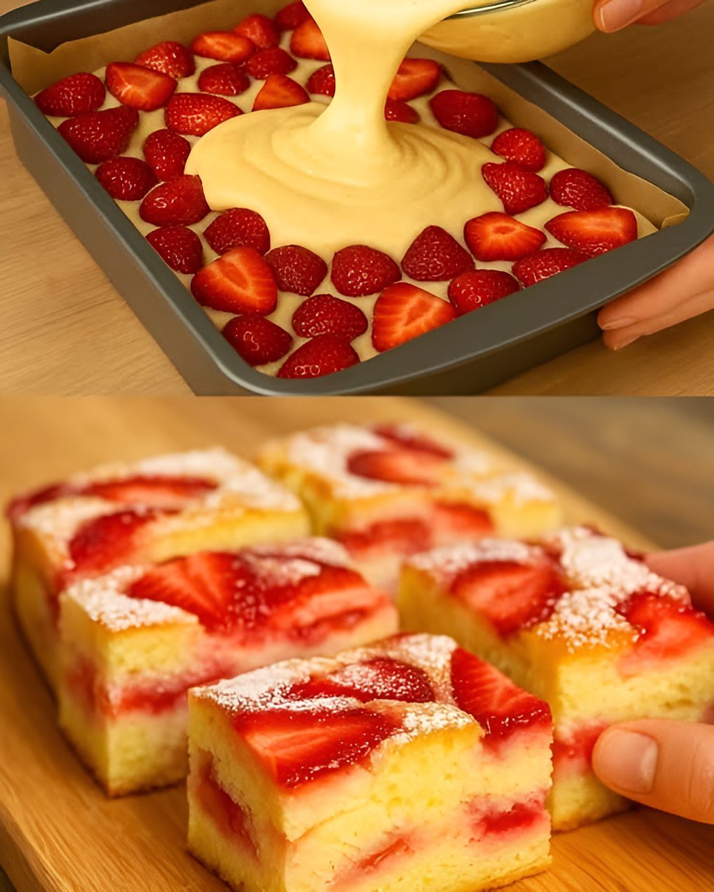 Zachte Cake met Verse Aardbeien – Een Zomerse Traktatie om van te Dromen