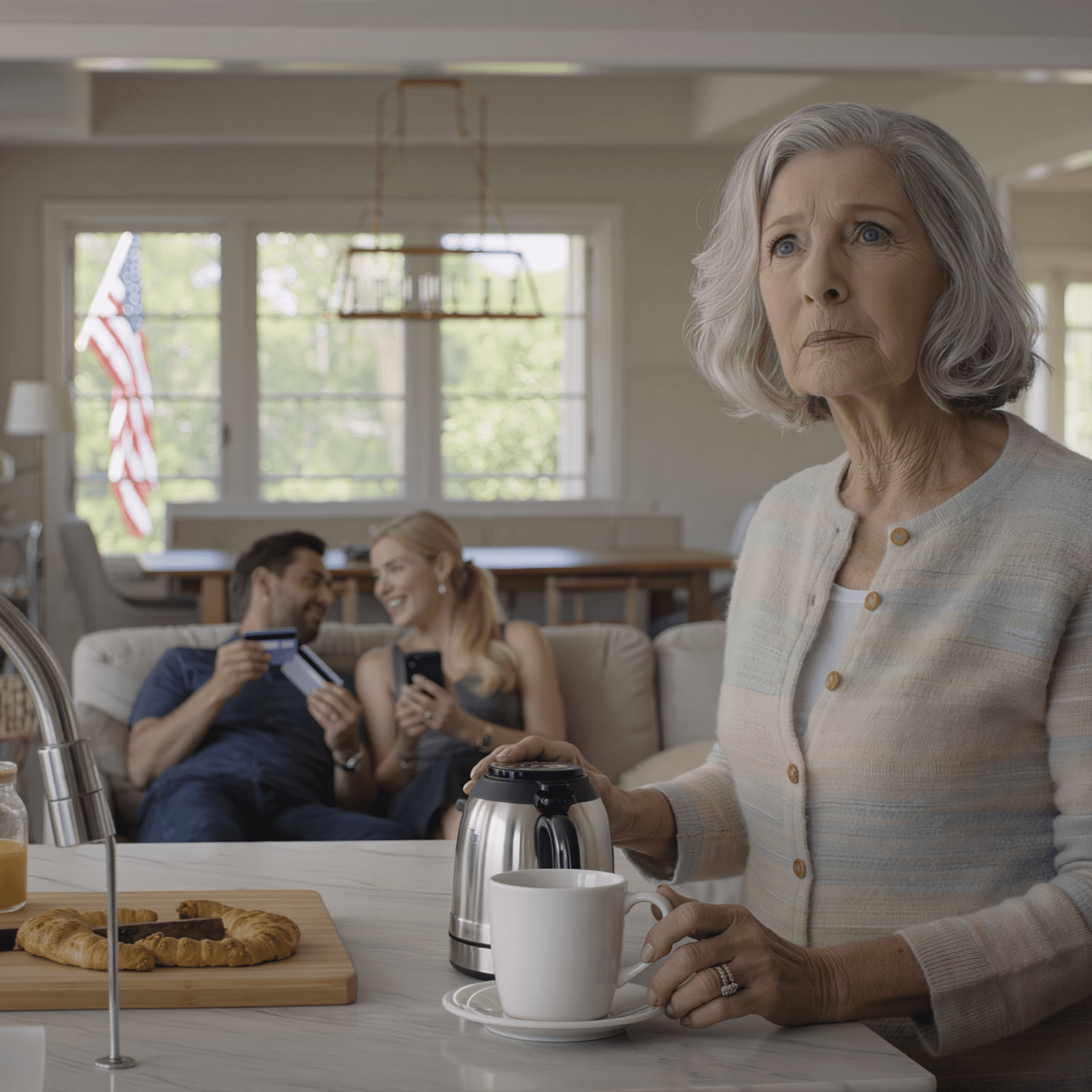 Maar gisteren, terwijl ik koffie aan het zetten was in mijn eigen huis – hetzelfde kleine bungalowhuis in een rustige buurt in het Midwesten waar mijn overleden echtgenoot en ik Kevin hebben opgevoed – wendde Jessica zich tot haar vrienden die op bezoek waren gekomen en sprak de woorden uit die alles veranderden.