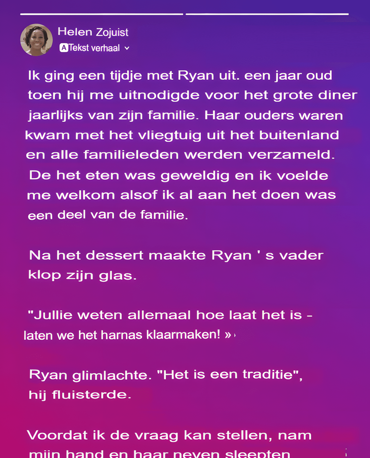 Eindelijk was de dag aangebroken. Clara had een eenvoudige maar elegante outfit uitgekozen. Richard had een chic restaurant gereserveerd en alles was aanwezig voor een gezellige avond. Maar vanaf de eerste gesprekken zag Clara meteen dat er iets mis was.