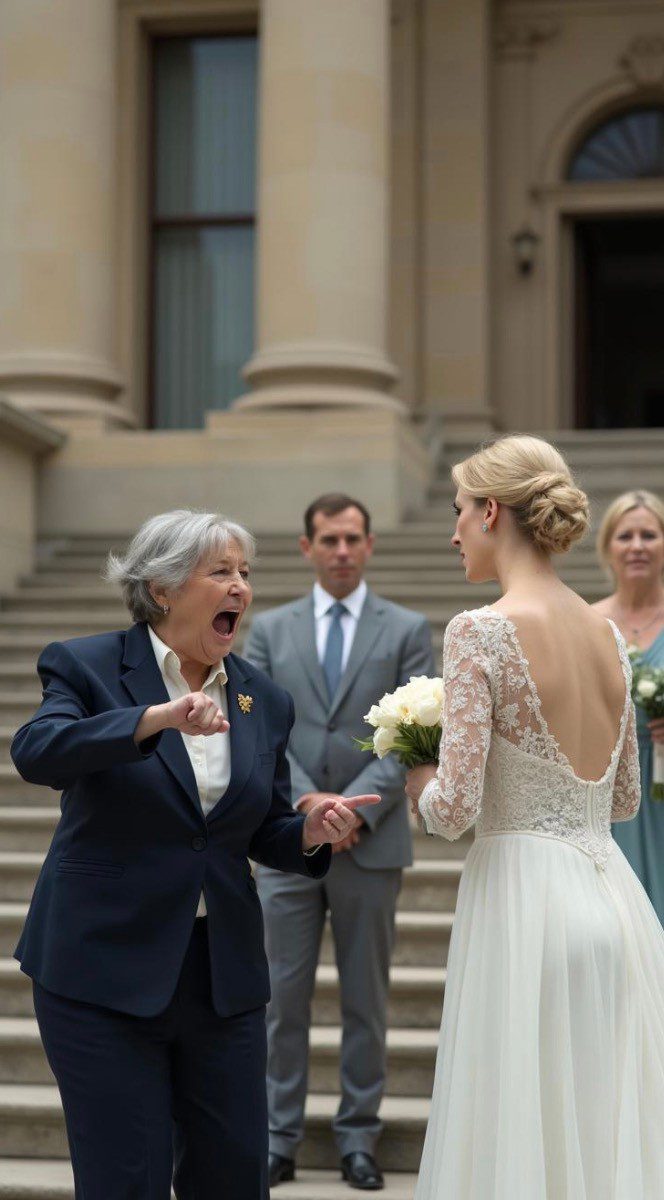 ‘Dit is het huis van mijn zoon,’ snauwde Patricia, terwijl ze met een afwijzende beweging van haar hand naar de vertrapte bloemen wees. Haar perfect gestylde haar bewoog niet in de wind. Ze keek me aan alsof ze iets bedorvens inspecteerde. ‘En ik sta niet toe dat uitschot zoals jij in deze familie trouwt.’