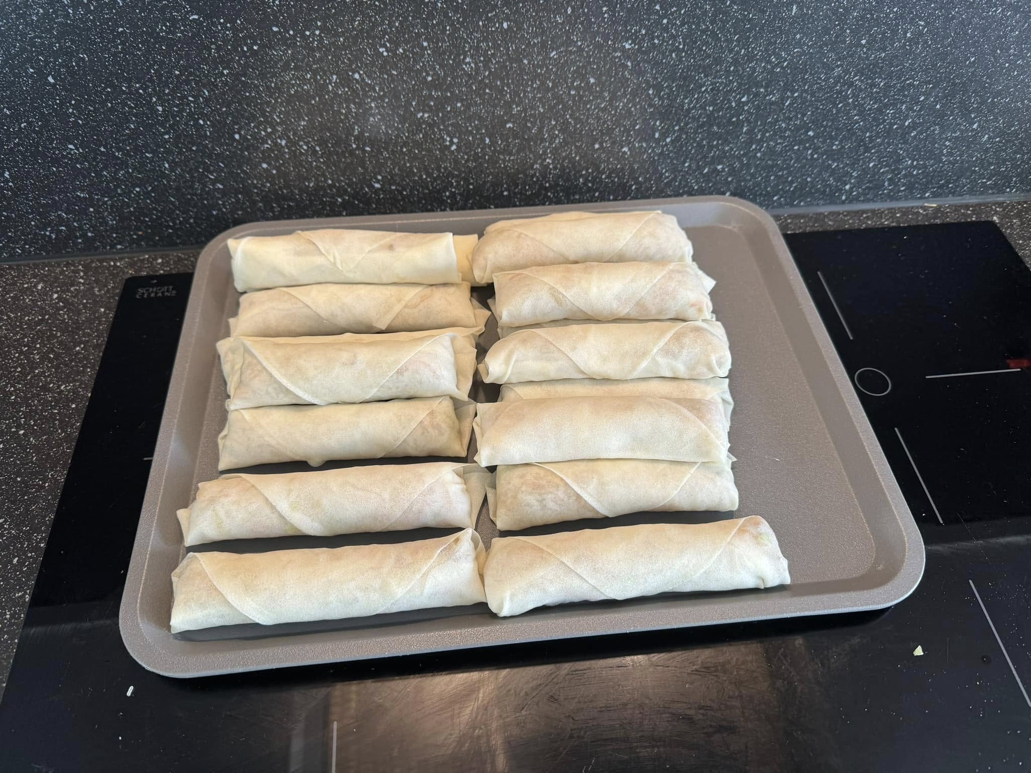 Frituur de loempia’s in hete olie (180 °C) tot goudbruin en krokant.