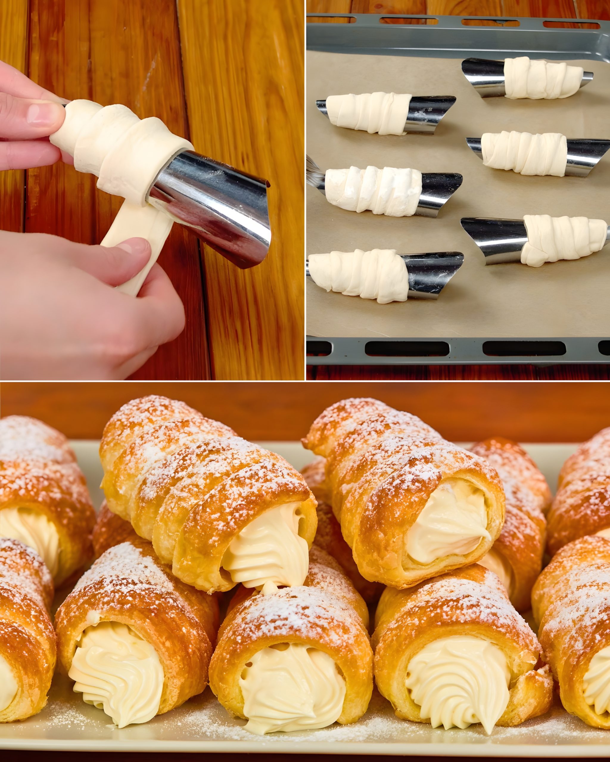 🥐 Zelfgemaakte Roomgevulde Bladerdeeghoorntjes – Knapperig & Romig! 🍮✨