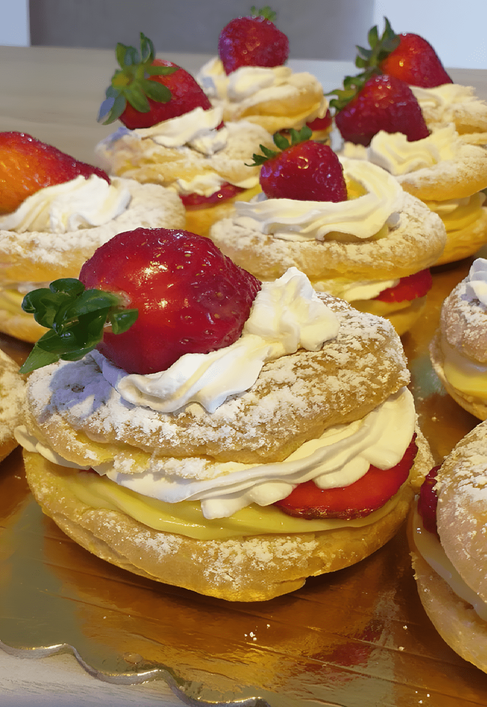 Doe het beslag in een spuitzak en spuit cirkels op een met bakpapier beklede bakplaat.