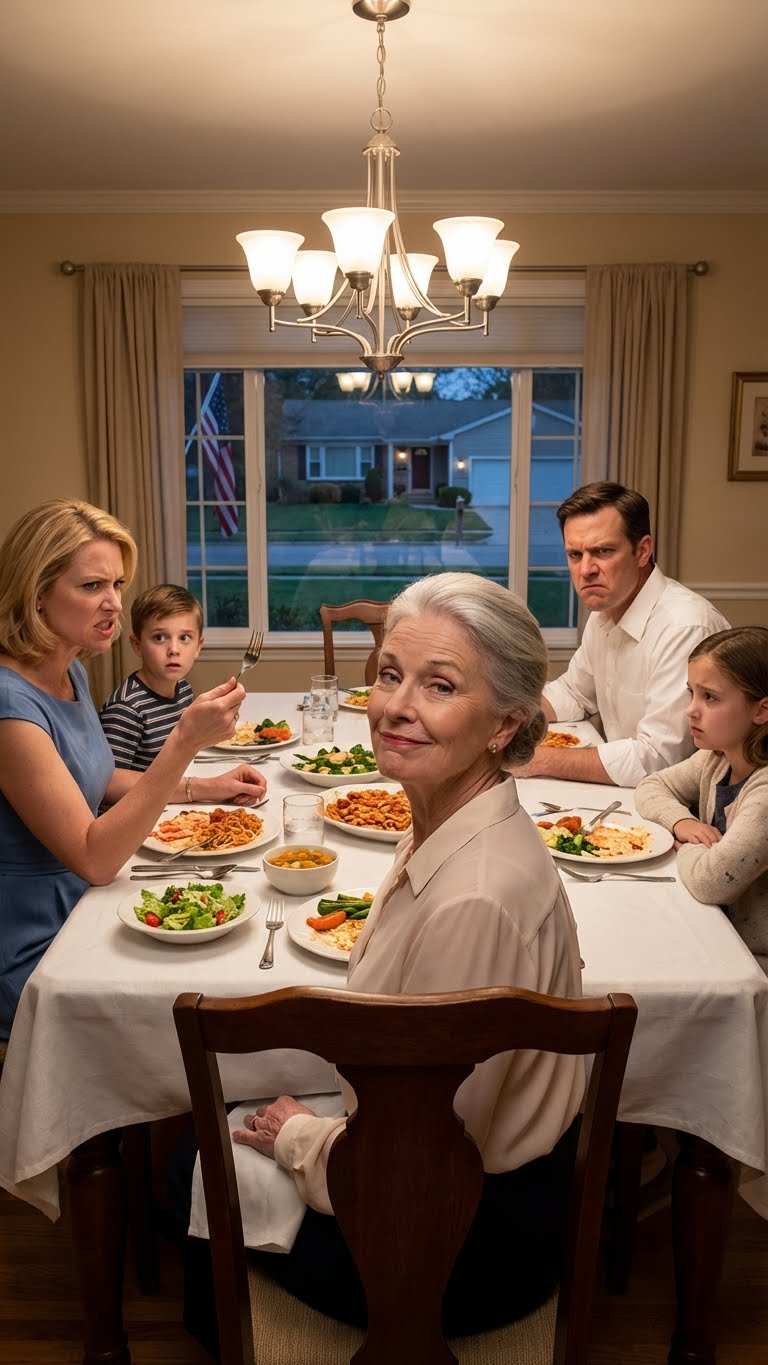 ‘Ga werken, stop met op onze kosten te leven,’ zei mijn schoondochter recht in mijn gezicht tijdens het familiediner bij mijn zoon thuis. Ik moest lachen, want ze had geen idee dat ik vijf miljoen dollar waard ben, en dat het huis waar zij en mijn zoon wonen niet van hen is, maar van mij.