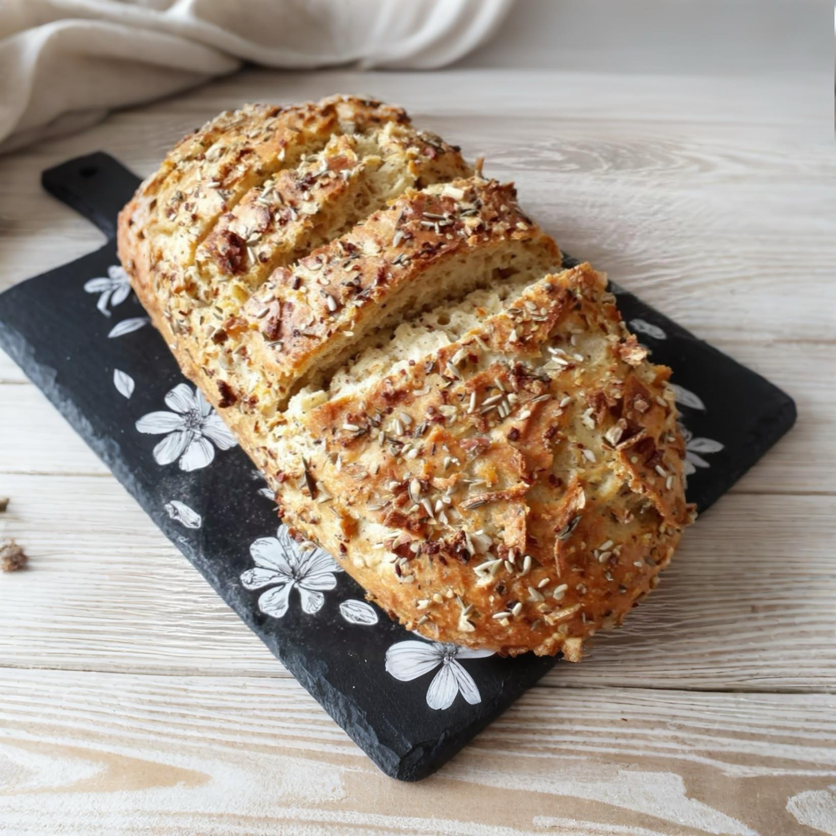 Zuurdesembrood met zadenmix (gebakken in een gietijzeren pan)